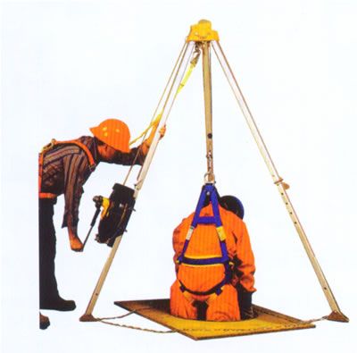 三角架參數(shù)<br><br>工作負荷:800kg<br><br>阻 斷 力:22kN<br><br>工作高度:214cm(完全展開)134cm(完全收縮)<br><br>包裝規(guī)格:173×39×36cm<br><br>重 量:16.5 kg<br><br>卷揚機參數(shù)<br><br>鋼 纜:20M<br><br>齒輪比例:8:1<br><br>工作負荷:180kg<br><br>阻 斷 力:1800kg<br><br>特 性:卷揚機帶自制剎車裝置 <br><br>用途<br><br>用于深井救助等。<br><br>
